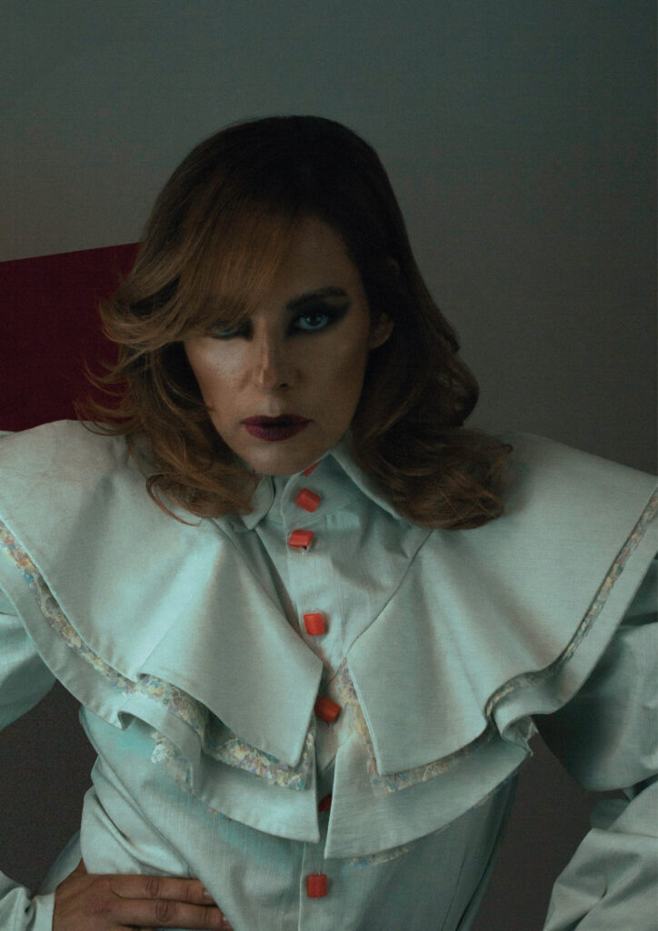 Rot, Pink, Neon-Gelb fließen zwischen Haar und Kleidung. Silhouetten überzeichnen Proportionen, historische Elemente treffen auf futuristische Materialien, Romantik auf Clubkultur. Licht und Schatten rhythmisieren die Szenen, Flash und Low-Key erzeugen Spannung zwischen Klarheit und Chaos.
